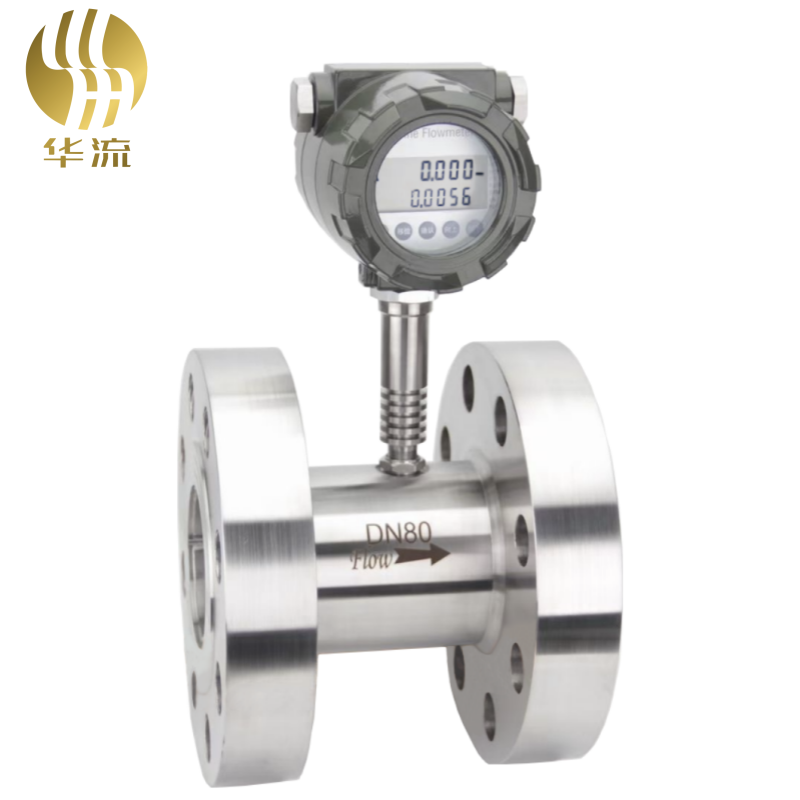 渦輪流量計采用渦輪進(jìn)行測量,它先將流速轉(zhuǎn)換為渦輪的轉(zhuǎn)速,再將轉(zhuǎn)速轉(zhuǎn)換成與流量成正比的電信號。這種流量計用于檢測瞬時流量和總的積算流量,其輸出信號為頻率,易于數(shù)字化。感應(yīng)線圈和磁鐵一起固定在殼體上。當(dāng)鐵磁性渦輪葉片經(jīng)過磁鐵時,磁路的磁阻發(fā)生變化,從而產(chǎn)生感應(yīng)信號。信號經(jīng)放大器放大和整形,送到計數(shù)器或頻率計,顯示總的積算流量。同時將脈沖頻率經(jīng)過頻率-電壓轉(zhuǎn)換以指示瞬時流量。葉輪的轉(zhuǎn)速正比于流量,葉輪的轉(zhuǎn)數(shù)正比于流過的總量。它的輸出是頻率調(diào)制式信號,不僅提高了檢測電路的抗干擾性,而且簡化了流量檢測系統(tǒng)。它的量程比可達(dá)10:1,精度在±0.5%以內(nèi)。慣性小而且尺寸小的渦輪流量計的時間常數(shù)可達(dá)0.01秒。廣泛應(yīng)用于石油、有機(jī)液體、無機(jī)液、液化氣、天然氣和低溫流體等。氣體渦輪流量計的應(yīng)用范圍包括發(fā)電及熱電聯(lián)產(chǎn)、供熱行業(yè);航空、航天、造船、核能及兵器行業(yè);機(jī)械、冶金、煤礦及汽車制造行業(yè);石油、化工行業(yè);醫(yī)藥、食品及煙灑制造行業(yè);森工、農(nóng)墾及輕工行業(yè)等。