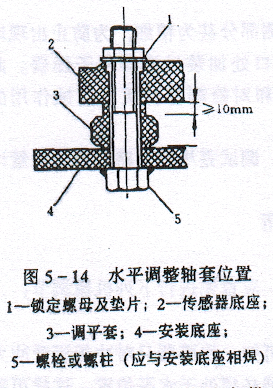 校正前,須保證水平調(diào)整軸套與傳感器底座間有足夠的空隙(在安裝時(shí)應(yīng)予考慮好),圖5 - 14所示即為水平調(diào)整軸套結(jié)構(gòu)示意圖。傳感器水平校正的具體步驟如下: