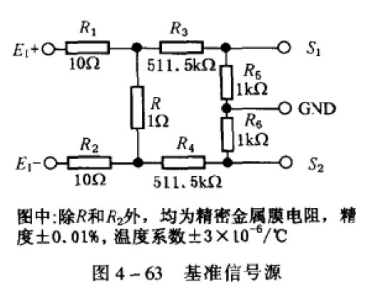 實現(xiàn)電磁流量計的互換性,不能僅僅依靠采用上述方法。更重要的是制定與貫徹生產(chǎn)過程的計量量值有效、有序地傳遞。保證轉換器與傳感器各個生產(chǎn)環(huán)節(jié)盡量不產(chǎn)生誤差。圖4 - 62是電磁流量計生產(chǎn)過程的計量標準傳遞的示意圖。圖中,電壓丁作基準和電阻工作基準的測量是用數(shù)字式萬用表,時間工作基準測量使用數(shù)字式頻率計?;鶞市盘栐词巧a(chǎn)廠用高等級的精密電阻制作的精度最高的僅有一個流速測試點的信號源。圖4 - 63所示是一個基準信號發(fā)生器示例,它是用1n±0,01%,溫度系數(shù)3x10 - 6/°的標準電阻對125mA勵磁電流的標準轉換器磁場采樣,并用精度為±O.OI%.溫度系數(shù)3×l0 - 6/℃的精密金屬膜電阻分壓,獲得0.4mV的低頻矩形波電壓,代表2m/s流速信號?;鶞市盘栐词怯糜阼b定校準一級標準轉換器的。這里的例子是校準2m/s點。做法是調(diào)節(jié)一級標準轉換器的零點和2m/s點的精度在±0,05%以內(nèi)。