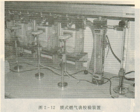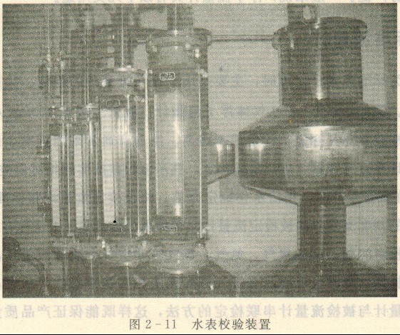 流量試驗(yàn)裝置上配用的浮子流量計(jì),其計(jì)量精度有別于常規(guī)的浮子流量計(jì)。原因是流量試驗(yàn)裝置檢定流量計(jì)時(shí),其試驗(yàn)流量點(diǎn)的流量偏差往往要求滿足(2.5~5)%RS。例如,水表試驗(yàn)裝置配用指示被檢水表試驗(yàn)流量(見圖2 - 11),又如膜式燃?xì)獗硇r?yàn)裝置配用指示被校燃?xì)獗淼脑囼?yàn)流量(見圖2 - 12)。