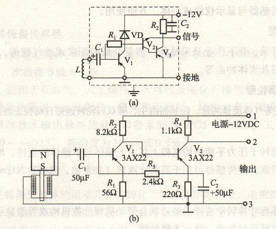 前置放大器由磁電感應(yīng)轉(zhuǎn)換器與放大整形電路兩部分組成,如下圖所示。