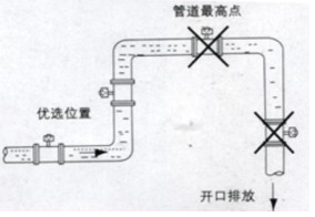 為了你正確的測(cè)量,在選擇管道上位置時(shí)應(yīng)注意以下幾點(diǎn)要求:⑴傳感器既可在直管道上安裝,也可以在水平或傾斜管道上安裝,但要求二電極的中心連線(xiàn)處于水平狀態(tài)。 ⑵介質(zhì)在安裝位置應(yīng)該滿(mǎn)管流動(dòng),避免比滿(mǎn)管及氣體附著在電極上。⑶對(duì)于液固兩相流體,最好采用垂直安裝,使被傳感器襯里磨損均勻,延長(zhǎng)使用壽命。 ⑷流量計(jì)安裝位置介質(zhì)不滿(mǎn)管時(shí),可采取抬高流量半后端管路的方法,使其滿(mǎn)管,嚴(yán)禁在管道最高點(diǎn)和出水口安裝流量計(jì)。(見(jiàn)圖)⑸修改管道的安裝方法: 當(dāng)介質(zhì)流速達(dá)不到要求時(shí),應(yīng)當(dāng)選用較小口徑的流量計(jì),這時(shí)應(yīng)使用異徑錐管或修改部分管道,使其與傳感器同口徑,但前后直管段至少須滿(mǎn)足:前直管段≥5DN,后直管道≥2DN(DN為管徑) ⑹前后直管段為流量計(jì)前≥5DN,后端≥2DN