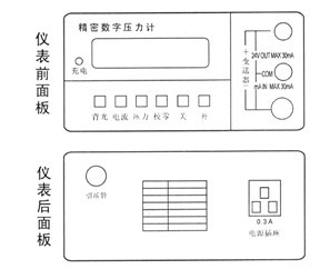 2、校零鍵:測量前,按一下此鍵,儀表自動將傳感器的零點值采集并送CPU進行處理,保證儀表所測數(shù)據(jù)為實際壓力值。
