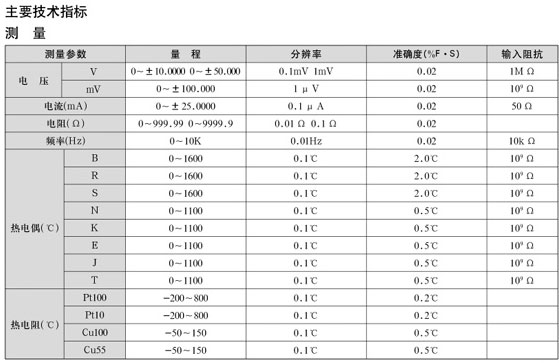 有V,mV,mA,Ω和熱電偶(TC),熱電阻(RTD)信號的輸出與測量.24VDC配電輸出為變送器提供回路電源,并可同時(shí)測量變送器所輸出的mA值.