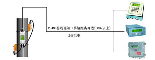 • 傳輸距離遠(yuǎn) 組網(wǎng)快捷   一次表與二次表(或計(jì)算機(jī))之間采用RS-485總線通訊,采用普通電纜即可,傳輸距離可達(dá)1000米以上,組網(wǎng)十分方便、快捷。這種傳輸方式抗干擾能力強(qiáng),解決了分體式超聲波流量計(jì)專用電纜成本高、抗干擾能力差、傳輸距離短等問(wèn)題。