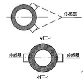 1. 傳感器裝在水平管道的頂部和底部,頂部的氣泡和底部的沉淀物干擾超聲波信號。