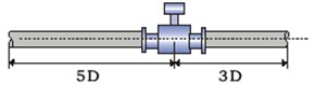 ·流量計前方最少要有5* D(D為流量計內(nèi)徑)長度的直管段,后方最少要有3* D(D為流量計內(nèi)徑)長度的直管段;