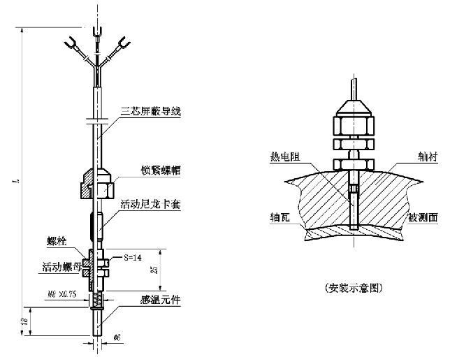 本產(chǎn)品根據(jù)電力行業(yè)的特殊需要而設(shè)計(jì),它除了具有安裝固定裝置外,還同時(shí)具有對(duì)引出導(dǎo)線(xiàn)的鎖緊裝置,以保證測(cè)溫元件不會(huì)因?qū)Ь€(xiàn)的繞動(dòng)而斷路。它主要用于汽輪機(jī)、旋轉(zhuǎn)機(jī)械軸瓦、電機(jī)線(xiàn)圈、發(fā)電機(jī)雙水內(nèi)管壁的表面溫度測(cè)量,該產(chǎn)品可靠性高、熱響應(yīng)時(shí)間快,測(cè)溫準(zhǔn)確,是目前工業(yè)領(lǐng)域中測(cè)量表面溫度理想產(chǎn)品。WZCD、WZPD-001外形尺寸圖,安裝示意圖